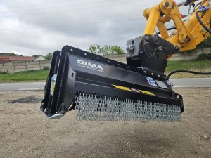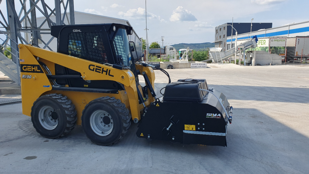 -Posibilitatea de înclinare a rolei de măturat spre dreapta prin intermediul unui tirant mecanic sau cu un cilindru hidraulic (opțional).