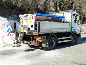 prelata din PVC, indicator rutier obligatoriu „ține stânga” cu săgeată, kit de împrăștiere asimetric controlat de la panou, senzor de nivel scăzut de sare cu lampa de avertizare pe panou de control, vibrator extern comandat de la panoul de control, picioare de parcare cu manivela, kit de fixare pe autovehicul, lumina de lucru rosie.