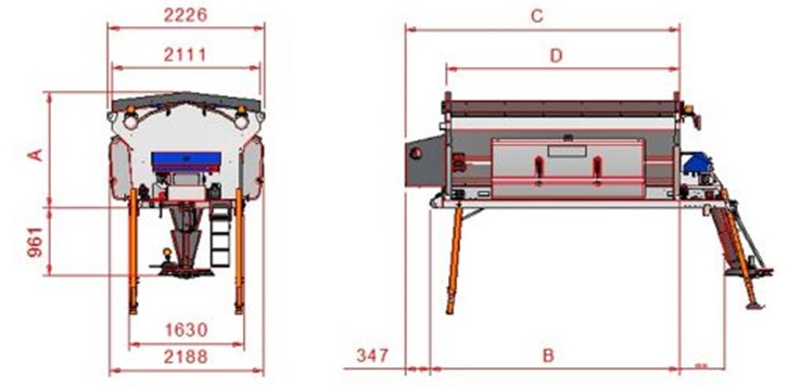 Motor diesel auxiliar pentru funcționare independentă, kit convertizor 12/24 volți, panou de comandă cu modul GPS pentru împrăștiere tahometrică, prelată de acoperire PVC, semn spate cu săgeată obligatorie în partea stângă, kit de împrăștiere asimetric cu panou de control, senzor de lipsă sare cu lumină si alarmă pe panou de control, vibratoare externe cu control pe panou, set picioare de parcare, scară de acces pentru verificarea rezervorului, kit de fixare pe vehicul (lanțuri, ochiuri și dispozitive de pretensionare sau curele cu clichet), kit de umidificare, pereche de faruri de mare vizibilitate, bară spate cu unitate de lumină intermitenta, kit role cu autocentrare laterală.